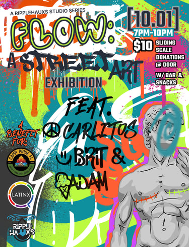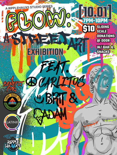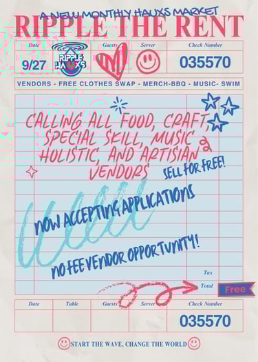 Ripple Hauxs Art studio showcases, we host our open mic "Tiny Desk like" series streamed live on Twitch: The Hauxs Show, Ft. Charlie Adonis, Residencies with bipoc trans and queer local DJs, community-driven collage labs, Free.99 friendsgiving feast--- we center BIPOC expression as a path to liberation. Our people are not an afterthought. They are the main event, and are valued for their art, impact and humanity.
