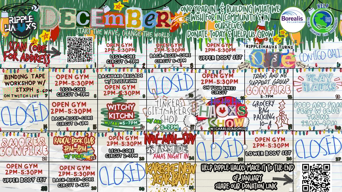 Below is the official list of Ripple Hauxs’ signature monthly programs, grounded in the December calendar.